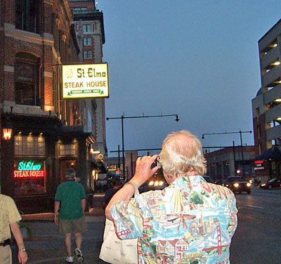 Outside, the gridlock had dispersed and it was nice as we explored the War Memorial and Market Street, followed by a fine dinner at St. Elmo’s Steak House, a local institution.