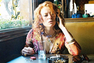 Swinton, certainly, has the appetite for the task. Her performance in the title role is theatrical and meticulously observed. She changes her talk, her walk, her whole manner of dealing with people, to make herself look and act like a whacked-out, aging party girl who thinks she’s brilliant, but isn’t, and who thinks she’s still sexy, but she’s dreaming. All that intelligence-wattage that we normally see in Swinton’s face? She brings it down about 20 IQ points.