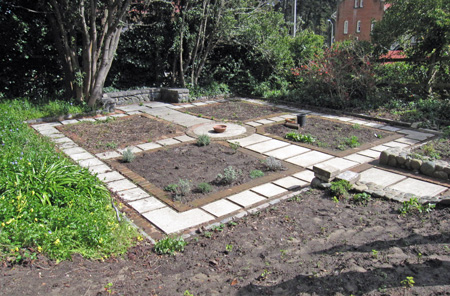 Around and down again to Wisser Court, one of the least trafficked spots in the Presidio, we find the Community Gardens, not an artistic endeavor, but gardens planted and used by the residents of the Presidio. They have been here for many years, but once the Habitats program started, the gardeners made an effort to make them look nice and function just as well or better. An appropriate site for the HABITAT FOR ANNA’S HUMMINGBIRD (8) by Chadwick Studio is just down the hill.