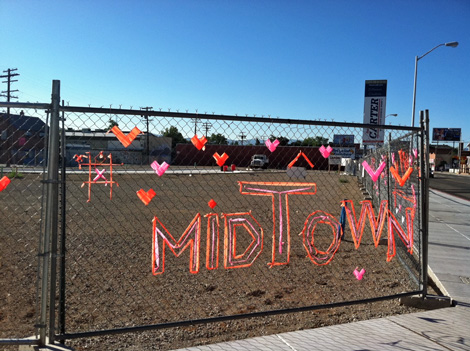 MIDTOWN graphics “sewn” into a chainlink fence across the street caught my eye… more on those later.