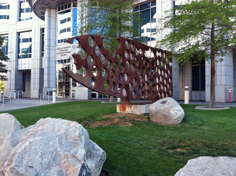 A sculpture in front of the Federal Courthouse carries (or perhaps preceded) the artistic influence of Midtown.
