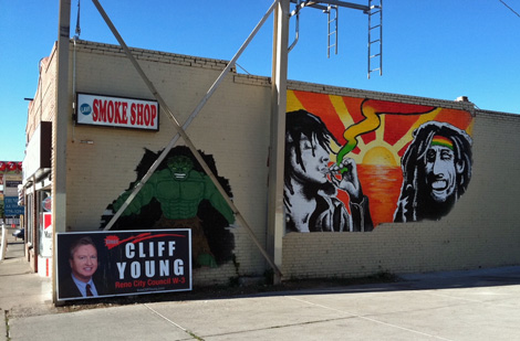 I had reason to be in the area this morning, so hey… I’ll take my walk there. What you’ll see is what I saw. I parked on California and walked from California Street south on South Virginia, to Mary Street and back north to Liberty Street. From the git-go I was I was taken by the quality of graphic art, so I whipped out my iPhone (the only ‘camera’ I had with me) to record the events.