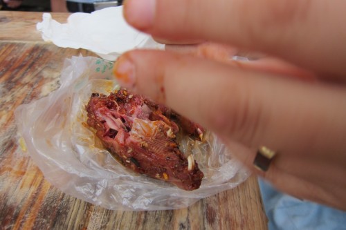 Looks like my fellow diner had never seen a western woman eat rabbit’s head.