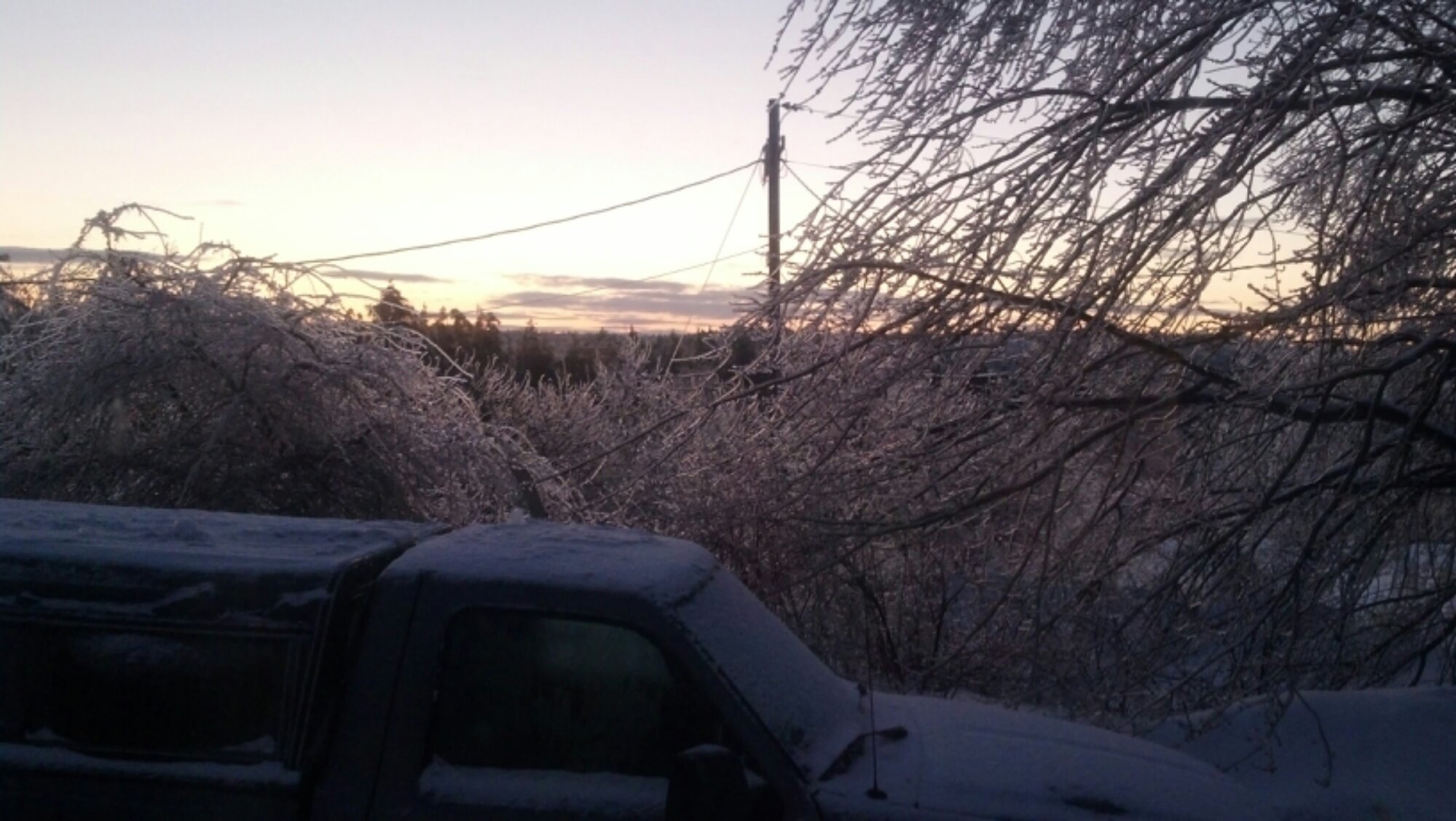 Our power went out yesterday around 3pm but came back on at 7pm…it’s now begun to flicker again, and if it goes out it could stay out for a while given how wide the iced area seems to be. We will have light and heat without grid power but we have stored as much water as possible in buckets and jars…the cows drink about 30 gallons a day…