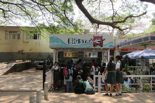 Many juice vendors have carts loaded with green coconuts that they will hack the top off and insert a straw for you to enjoy the coconut water inside (typically 30 rupees, or 50 cents). So this picture is the equivalent of a crushed Coke can rolling in the gutter…this is the only time I really saw an empty lying around, though. Someone must be regularly sweeping up the streets in our area because they’re quite free of trash (construction supplies and debris, however, are are an all-too-common impediment on the sidewalks).