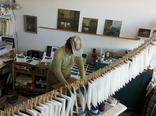During November, Alison conceives and prints an edition of silkscreen prints, a holiday tradition of more than 20 years. It’s mail art. Check your mailbox soon.