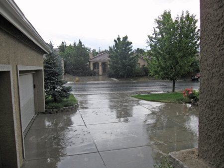 At the Spa up north, Brian was reminded of the wonderfulness of his hot tub, but it has been out of order for a while. Brian so loves his hot tub. He gave me the job of finding a guy to fix it, and I made some calls. Yes, and there was a rainstorm…
