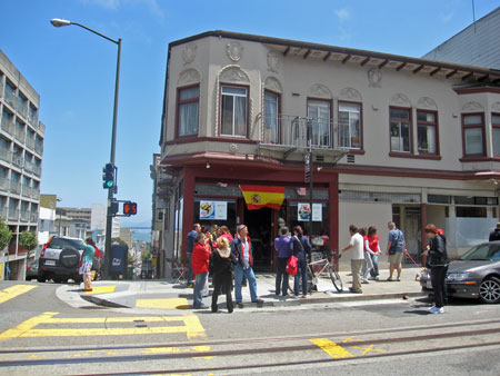 We’ll go to the end of this building then ramp up to the third — of six — floors to park. Five bucks, and you can use your ticket stub for a free slice at the pizza place (right beside that Ford). Hey, this is Reno. In SF they charge $20 to $40 within 5 blocks of the ballpark. This is just across the street.