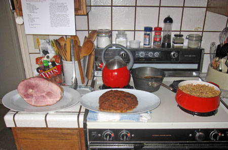 Not that we didn’t have meat, we had plenty. That’s a Burgers’ Smokehouse “City Ham” from Missouri. I made a K-Paul Meatloaf and macaroni salad with a barbecue flavor. Now that was good, and it’s a good thing because we had enough to eat for a week.